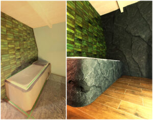 3D Fillit sziklafal – előtte–utána -fürdőszoba